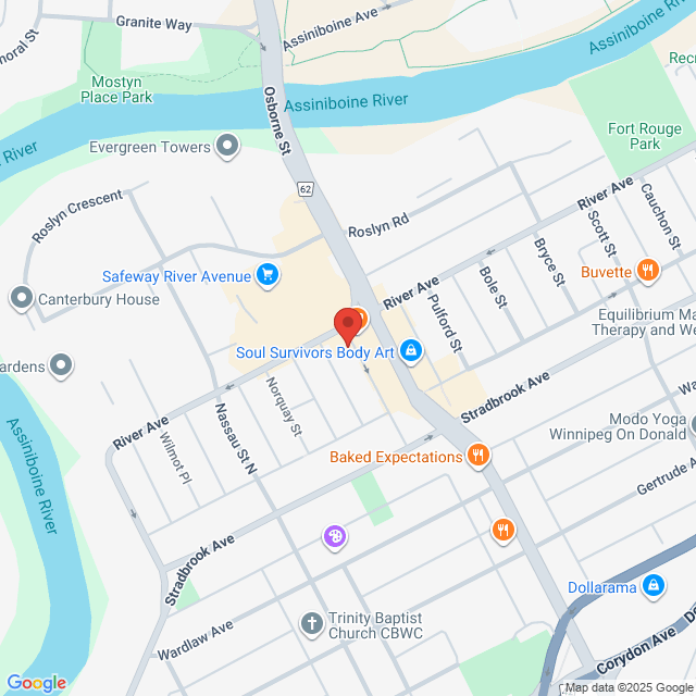 Located in Osborne Village, directly across from the "SAFEWAY" Mall, River Ave.
